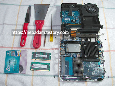 You Tube - Mac Mini Disassembly Video http://www.youtube.com/watch?v=ND0VFRx6lfs :맥미니 램과 하드디스크를 교체하는 과정을 보여줌