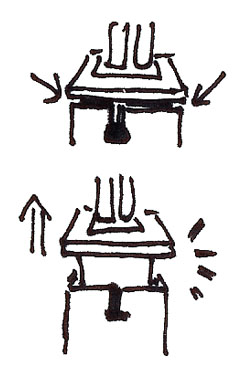 이 부분은 위 그림처럼 접합된 중간 부분을 족집게 등으로 이용해서 한쪽을 틈 사이에 집어넣고 지렛대 원리로 위로 천천히 밀어 올려 뽑아야 한다. (Update: 단자 분리 이미지 추가 2011. 08. 06.)