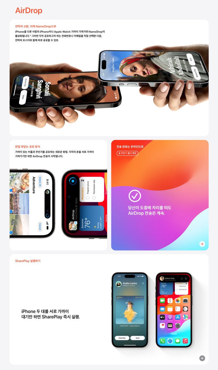 iOS 17 에어드롭 기능 소개 - 애플 https://www.apple.com/kr/ios/ios-17-preview/