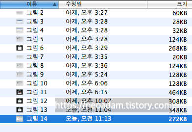 이제 실제로 타임머신을 이용해서 파일을 되살려보죠. 예를 들어서 그림 14를 삭제했다고 가정합시다.