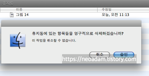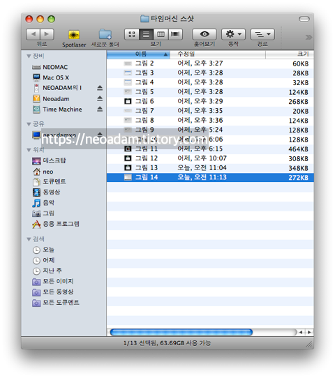 이제 실제로 타임머신을 이용해서 파일을 되살려보죠. 예를 들어서 그림 14를 삭제했다고 가정합시다.