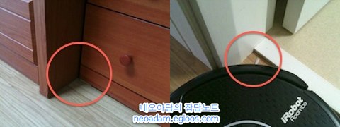 아주 구석구석까지는 깨끗하게 청소해 내지는 못합니다. 당연한 말일지도 모르지만, 아래와 같이 청소기가 들어갈 수 없는 부분(청소기 본체의 높이 9cm 이하 높이), 스스로 최대한 들이민다고 해도 브러시가 닿지 않는 모서리 부분 등은 청소가 잘 안 되기 때문입니다. 구석진 곳(가로×세로 1미터 이하 공간)에선 가끔 탈출하는 데 시간이 걸리기도 합니다.