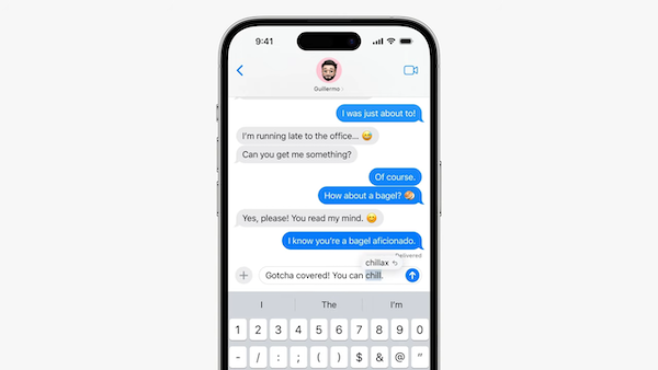 ‘자동 완성 텍스트’ 기능이 새로운 트랜스포머 언어 모델을 활용해 단어를 더욱 정확하게 예측해서 제시함. 지원 기종: iPhone 12와 그 이상. 지원 언어: 중국어(간체), 영어, 프랑스어, 스페인어