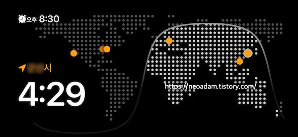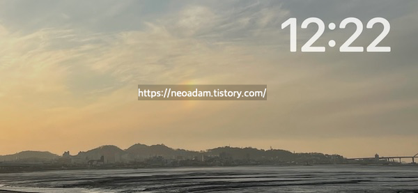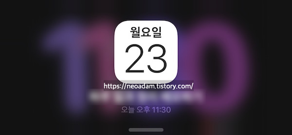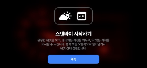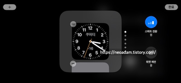 스와이프하면 위젯, 사진, 시계 순서로 바뀜.
