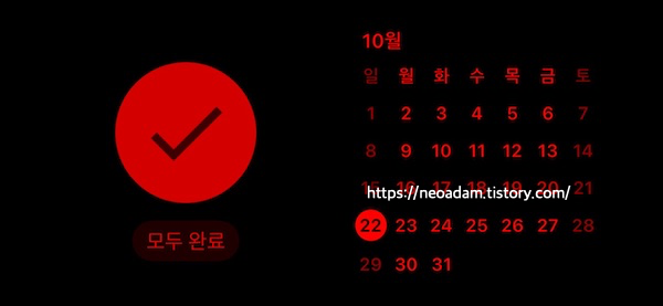 어두운 곳에서는 화면이 밝아지지 않고 붉은색 톤으로 표시되어 밤에 숙면을 방해하지 않음.
