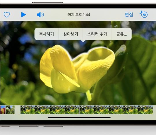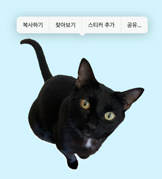 사진이나 동영상 속 배경에서 여러 피사체를 떼어 지원앱에 넣을 수 있음. (메시지 앱 등)