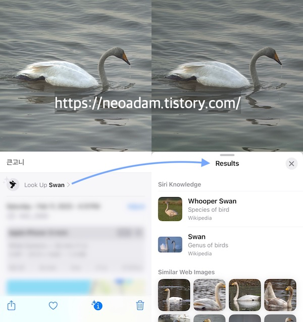 사진 속 사물을 인식하여 관련 정보를 알려주는 기능. 인식하면 사진 앱 아래 메뉴에 있는 ⓘ 아이콘이 반짝이는 ⓘ 아이콘으로 바뀜.