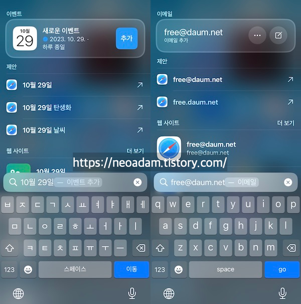 전화번호, 이메일, 날짜, 시간을 입력하면 전화 번호 연락처 만들기, 메일 보내기, 캘린더 이벤트 만들기 등을 바로 작업할 수 있게 해줌.