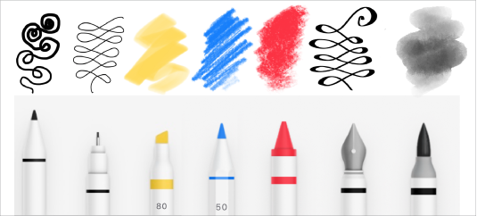 이전에 비해서 더 많은 도구가 들어감. 마크업 그리기 도구(가변 너비 펜, 만년필, 형광펜, 수채화 붓, 슬라이스 지우개, 눈금자 )와 같음.