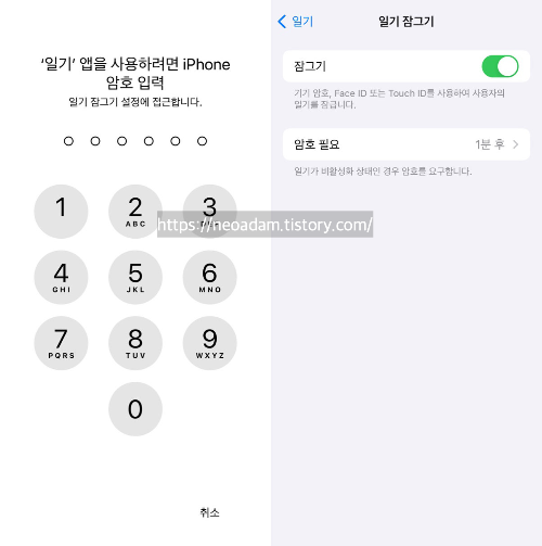 일기 잠그기 기능은 페이스 ID가 아니라 기기 암호를 넣어야 함.