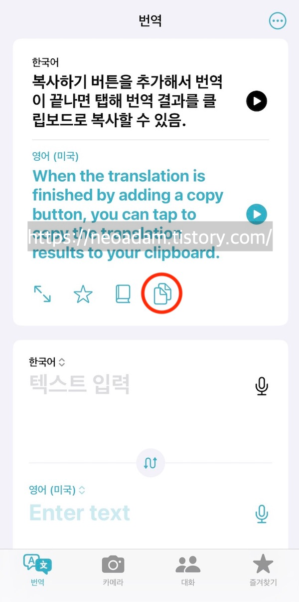 복사하기 버튼을 추가해서 번역이 끝나면 탭해 번역 결과를 클립보드로 복사할 수 있음.