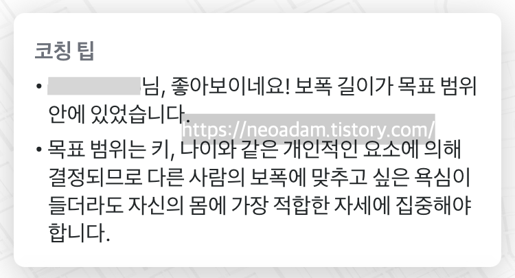 또한 운동을 마치면 종합적으로 평가하는 코칭 팁도 제공합니다.