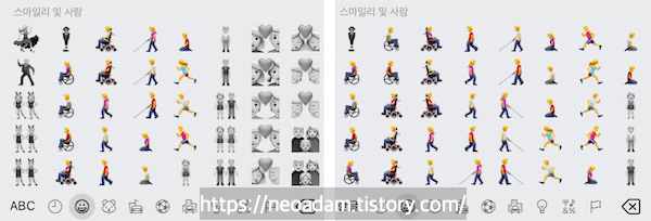 사람 및 신체 이모티콘 18개에 다른 방향을 향하게 하는 옵션이 추가됨.